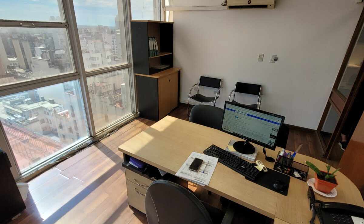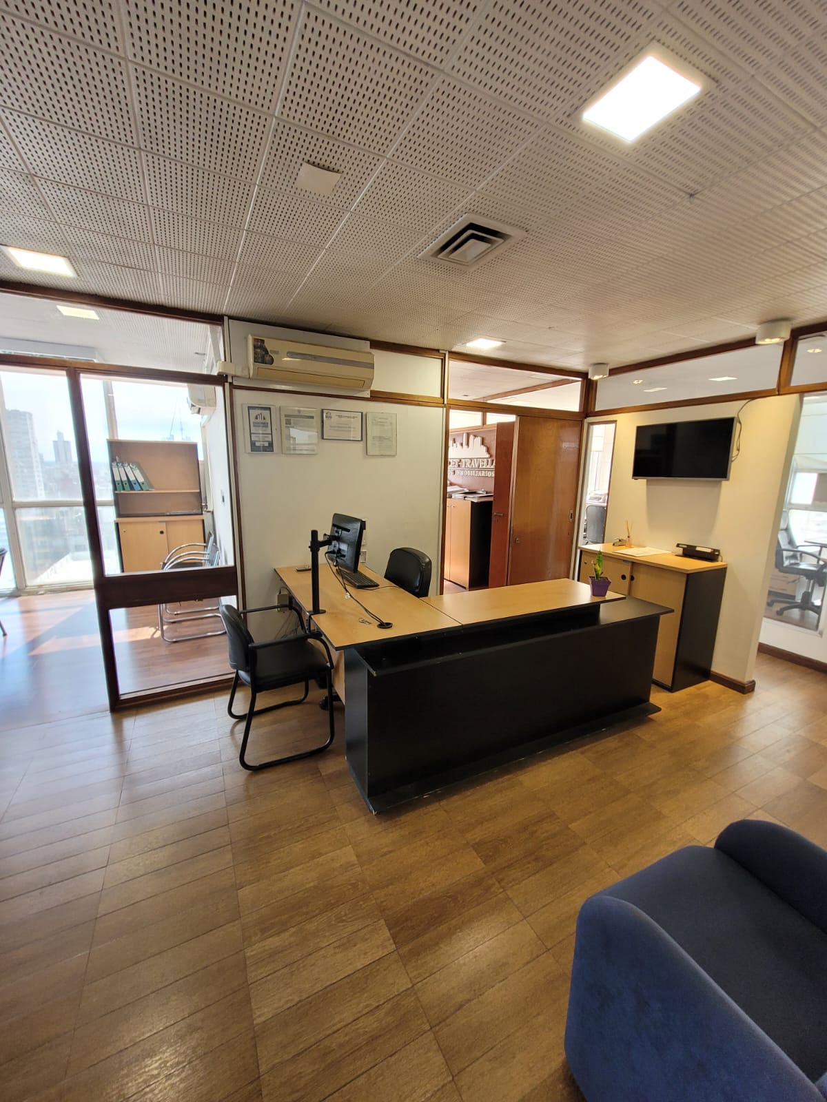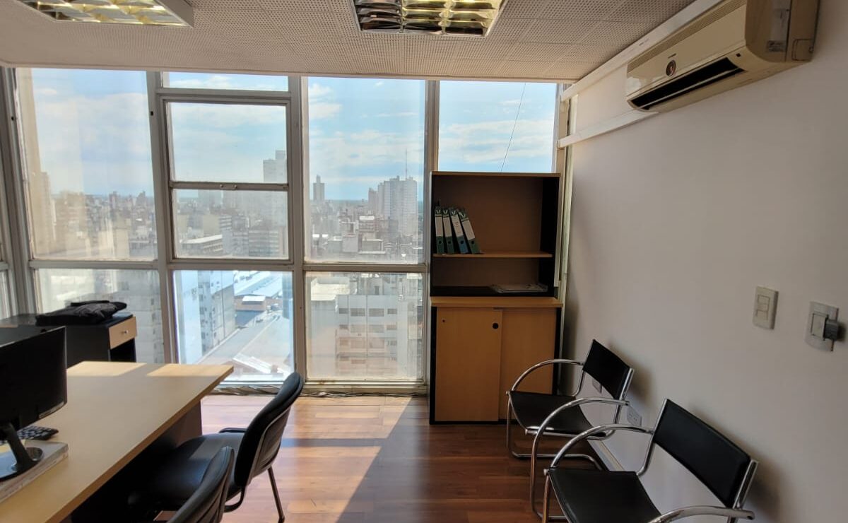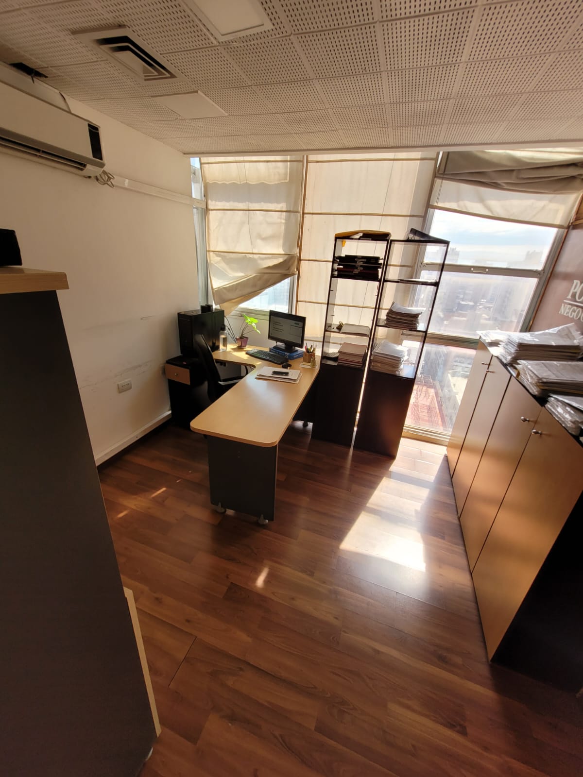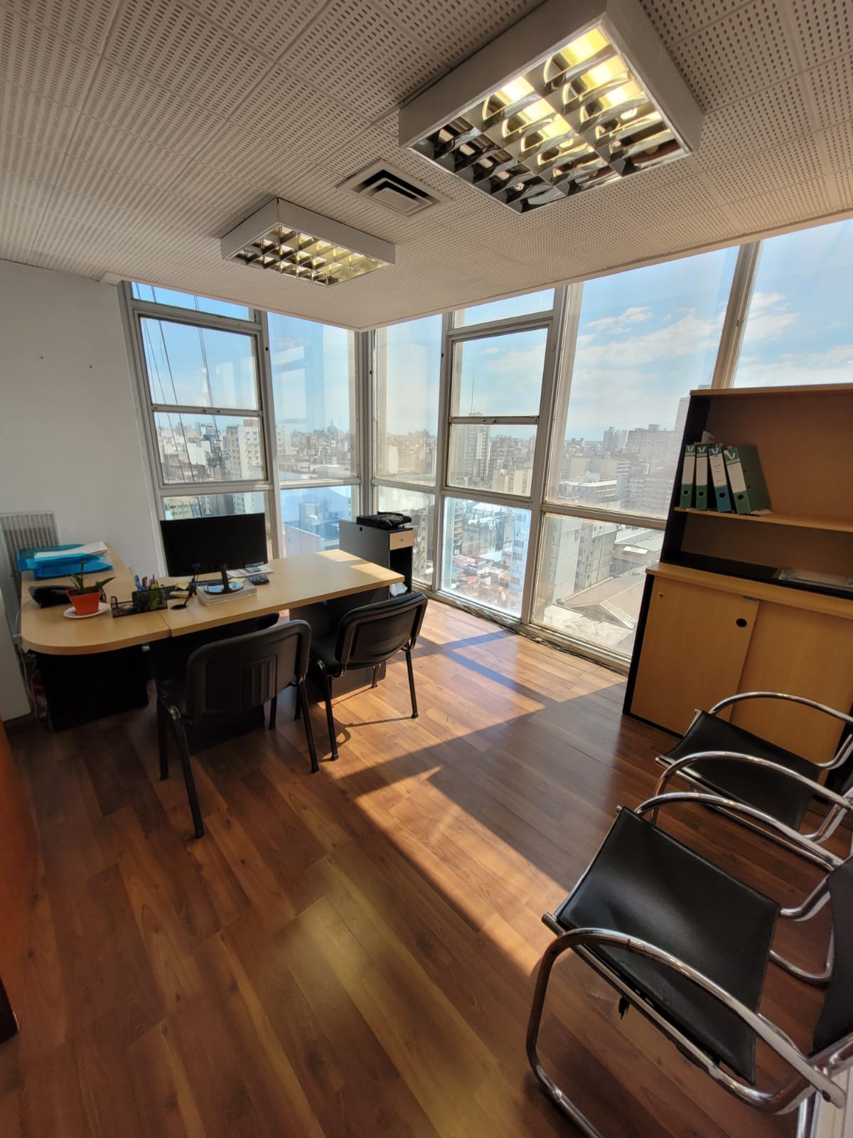 La oficina cuenta con 85 metros cuadrados exclusivos. Piso 14. Se encuentra en esquina con amplios ventanales en todos los ambientes. Cuenta con una sala de espera, sala de reuniones y cinco espacios privados para reunion o box de trabajo. Cuenta con aires acondicionados. Baño privado con antebaño.