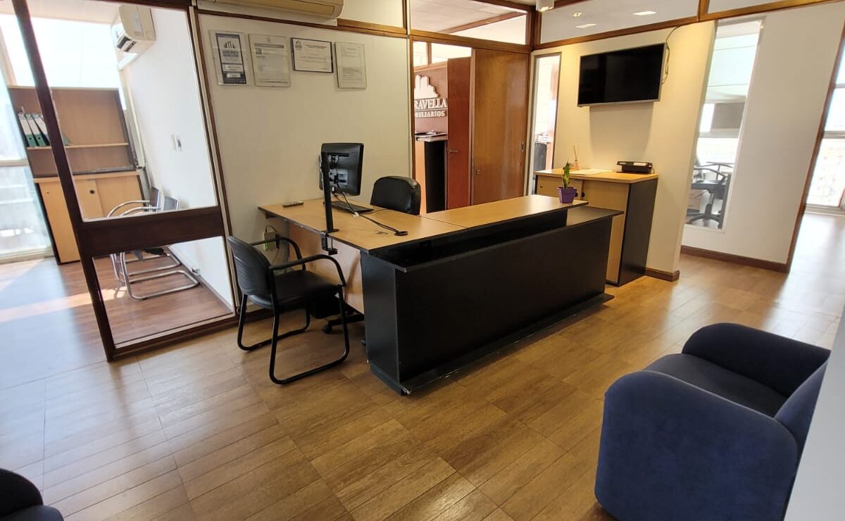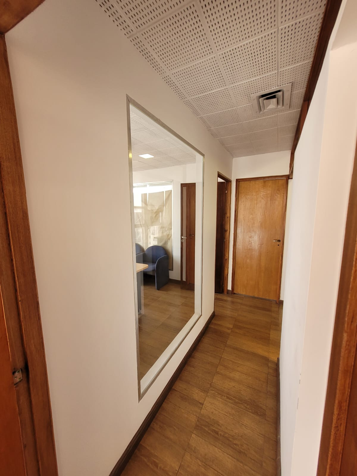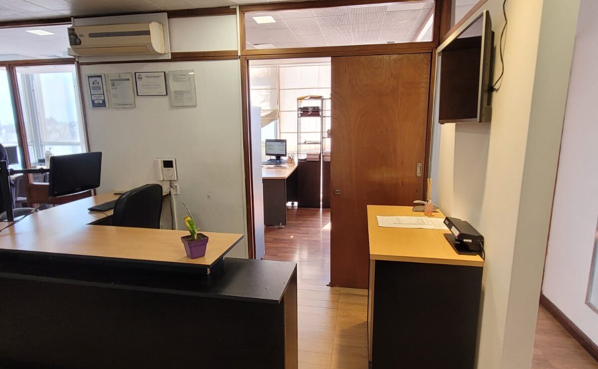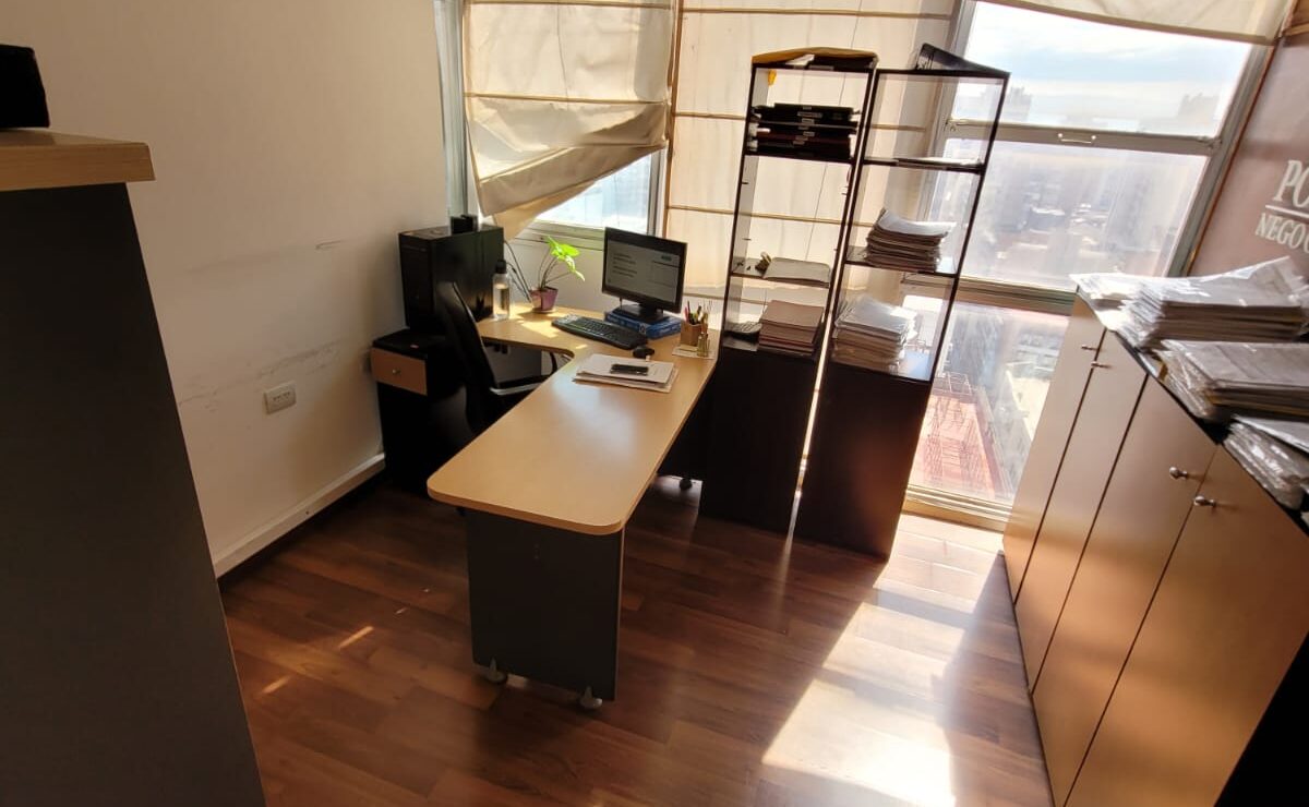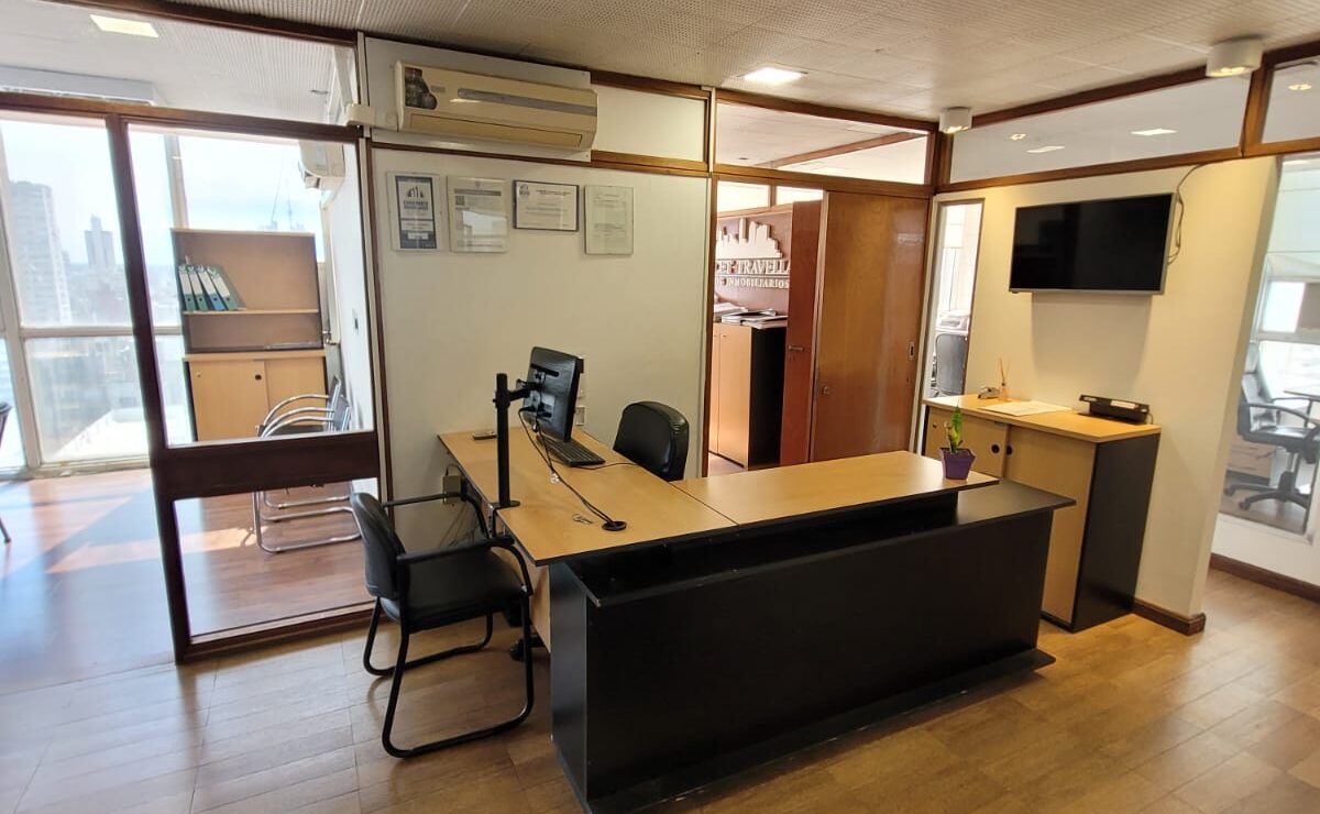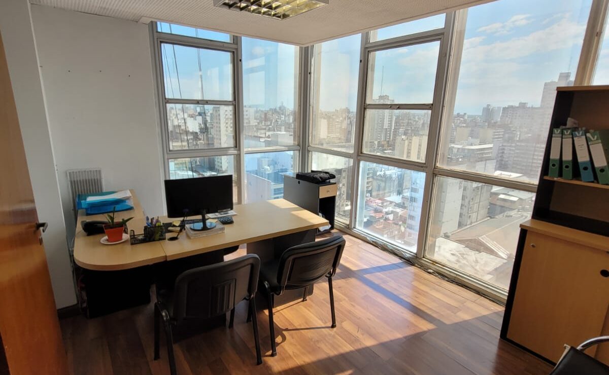 La oficina cuenta con 85 metros cuadrados exclusivos. Piso 14. Se encuentra en esquina con amplios ventanales en todos los ambientes. Cuenta con una sala de espera, sala de reuniones y cinco espacios privados para reunion o box de trabajo. Cuenta con aires acondicionados. Baño privado con antebaño.