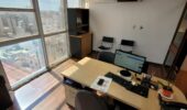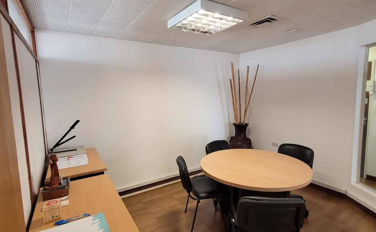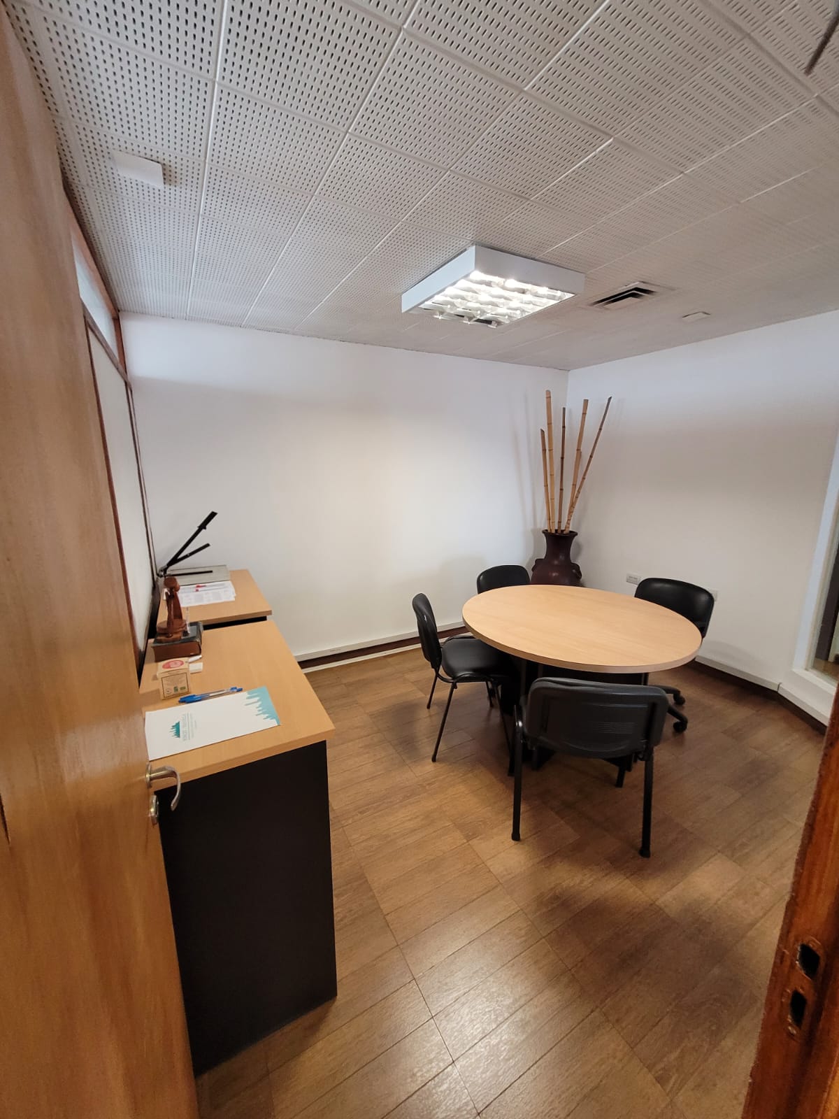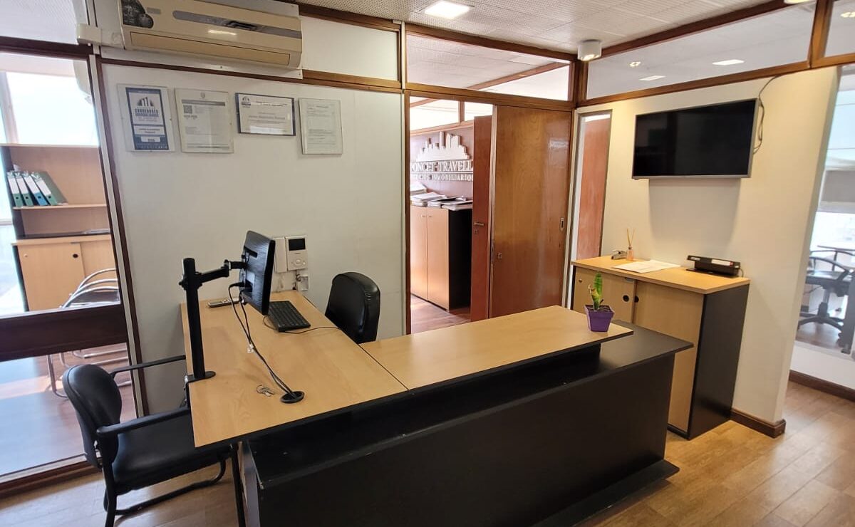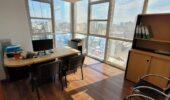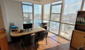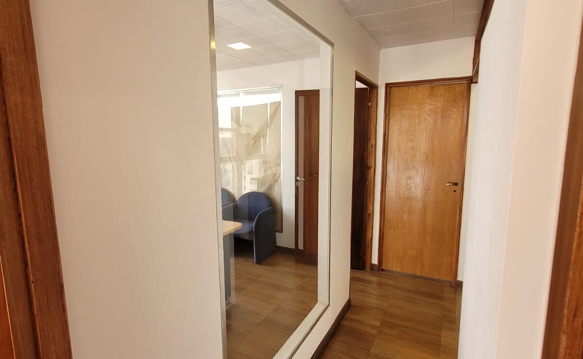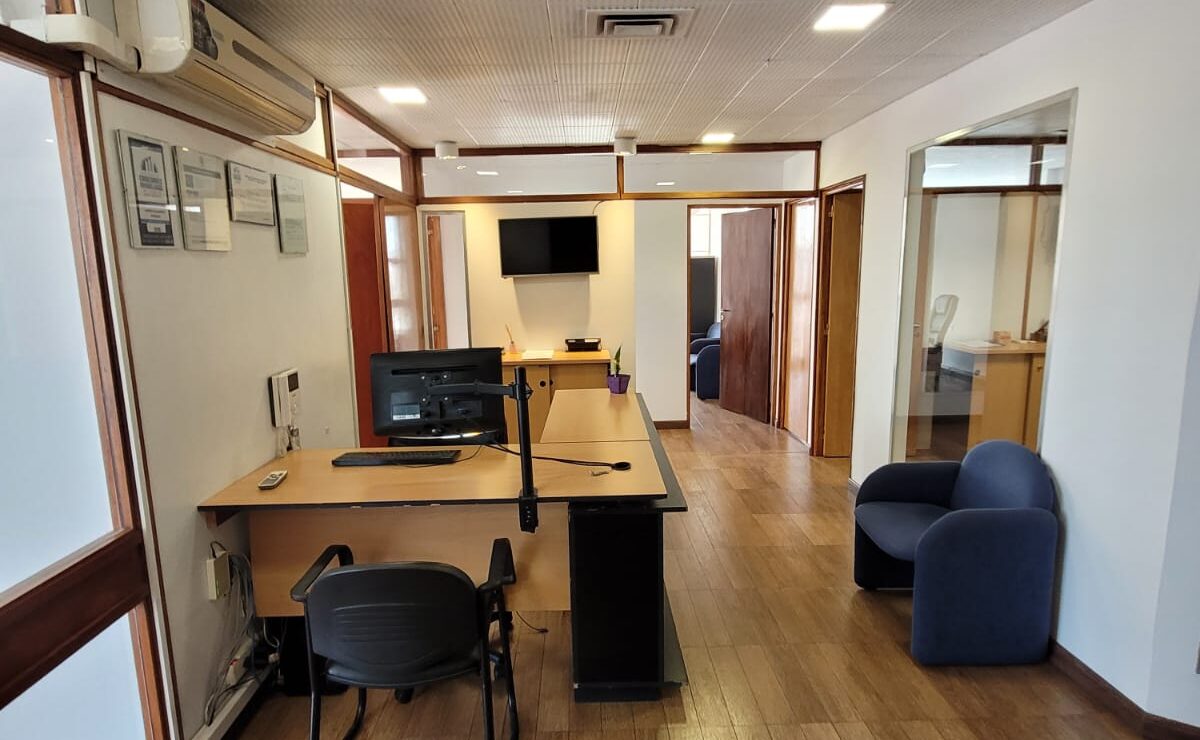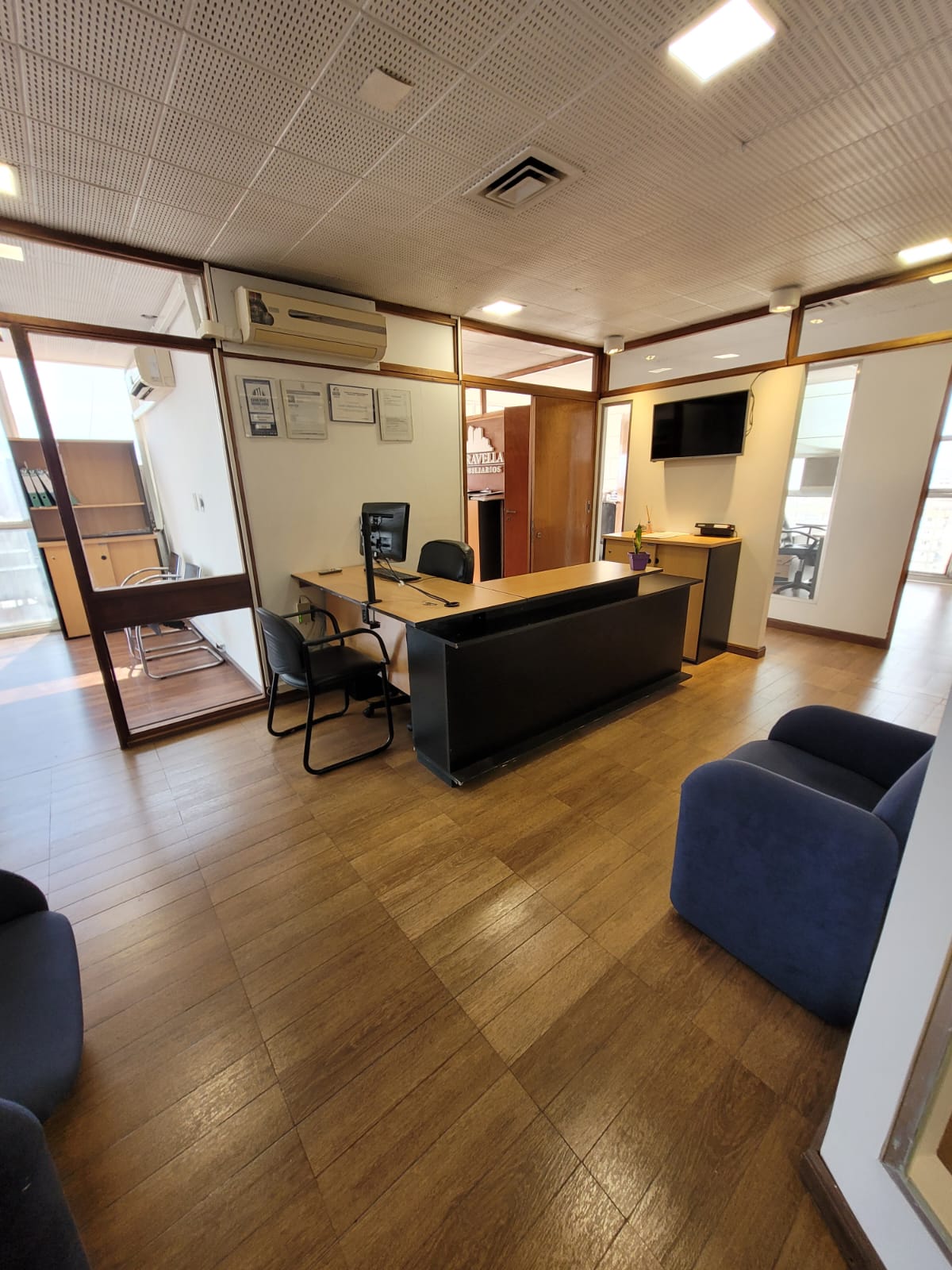 La oficina cuenta con 85 metros cuadrados exclusivos. Piso 14. Se encuentra en esquina con amplios ventanales en todos los ambientes. Cuenta con una sala de espera, sala de reuniones y cinco espacios privados para reunion o box de trabajo. Cuenta con aires acondicionados. Baño privado con antebaño.